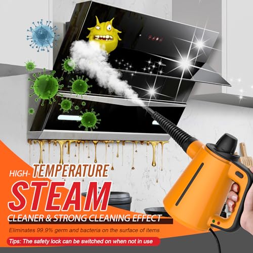 HomHou Handheld Steam Cleaner, Multipurpose Steam Cleaner with 380 Ml Capacity And 10 Accessories, High Temperature Portable Steam Cleaner for Carpet, Toilet, Floor, Oven, Bathroom And Windows(Orange)